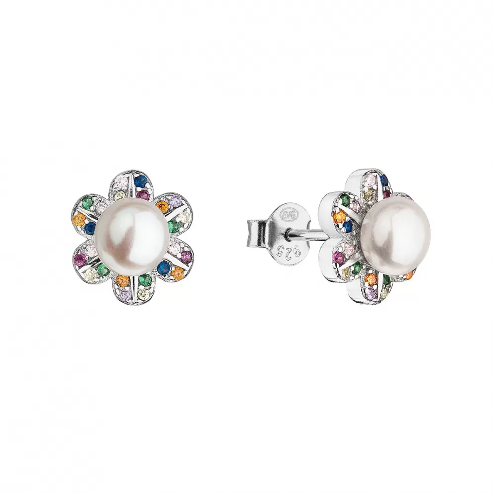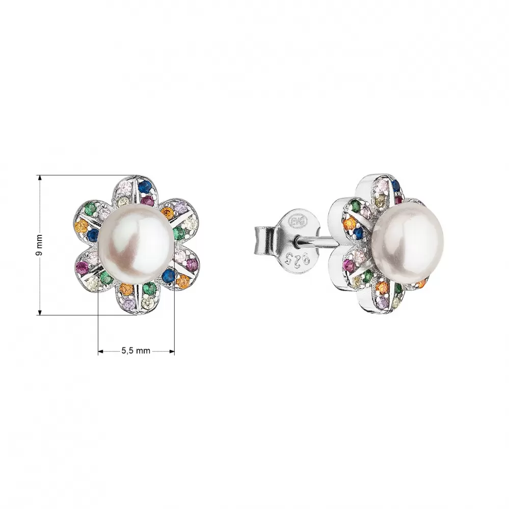 Strieborné náušnice kvietky multi zirkónmi s bielou riečnou perlou 21071.3 multi