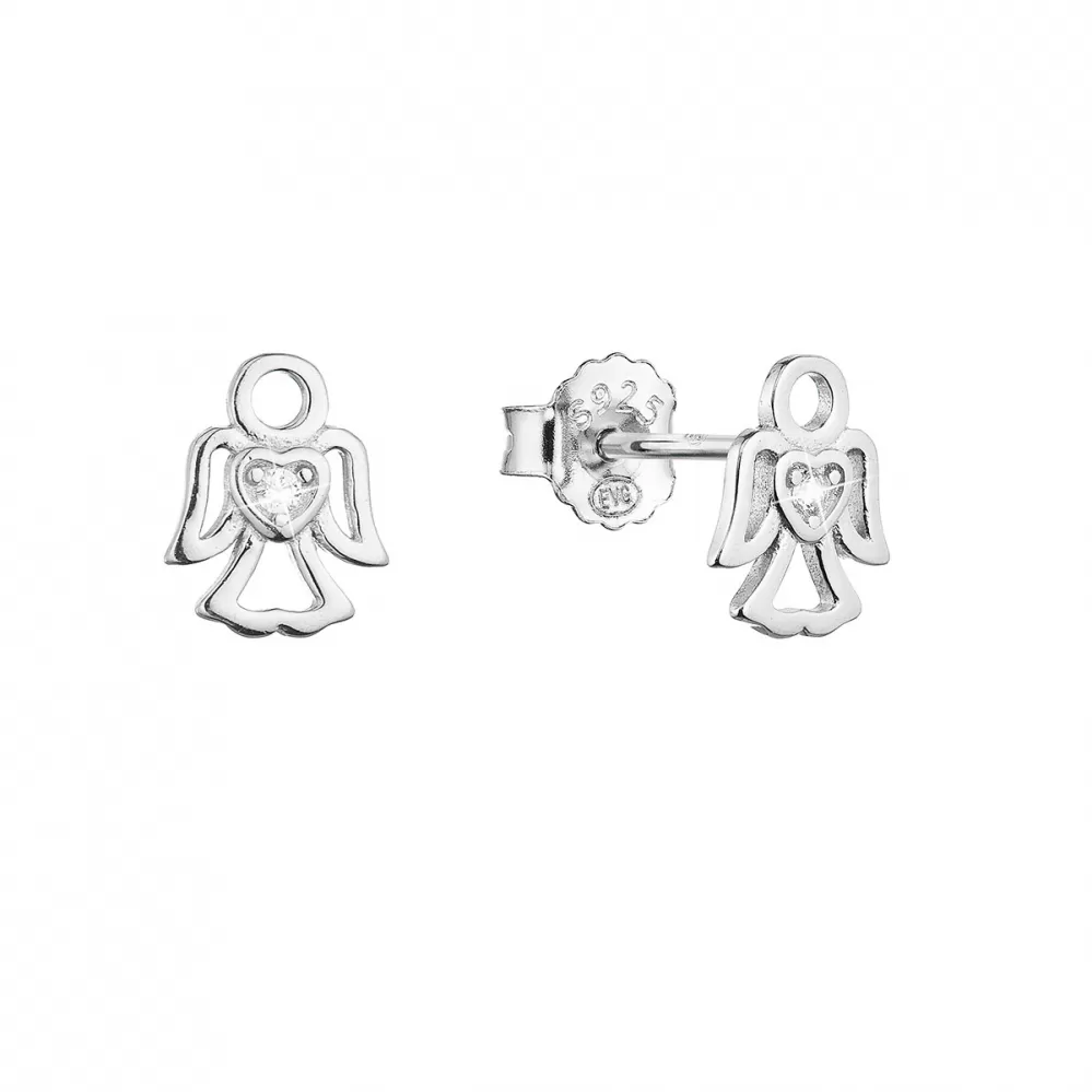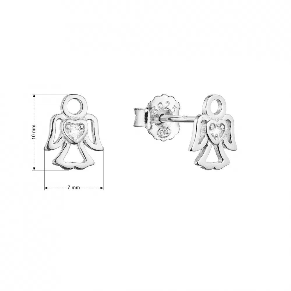 Strieborné náušnice malý anjel so zirkónom tvaru srdiečka 11457.1