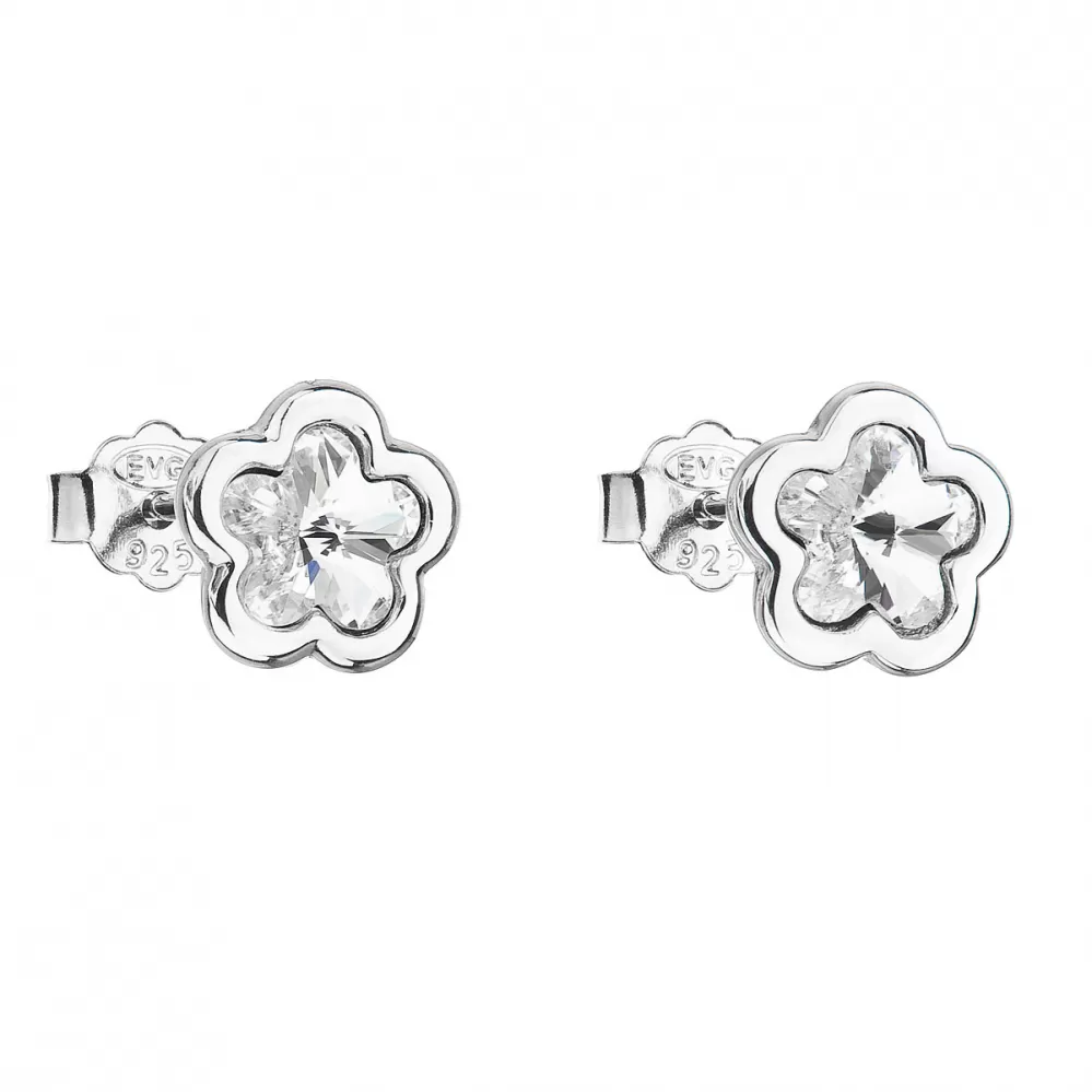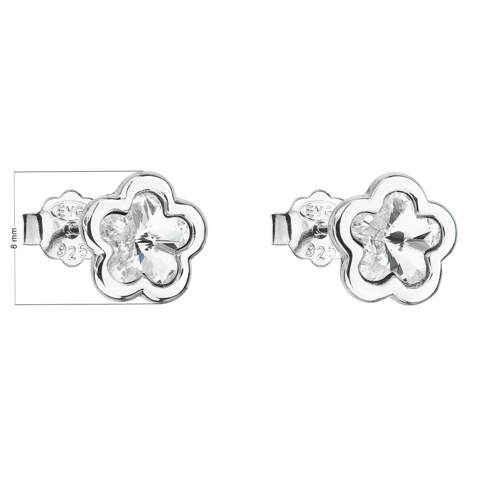 Strieborné náušnice pecka s kryštálmi Swarovski biela kvietka 31255.1