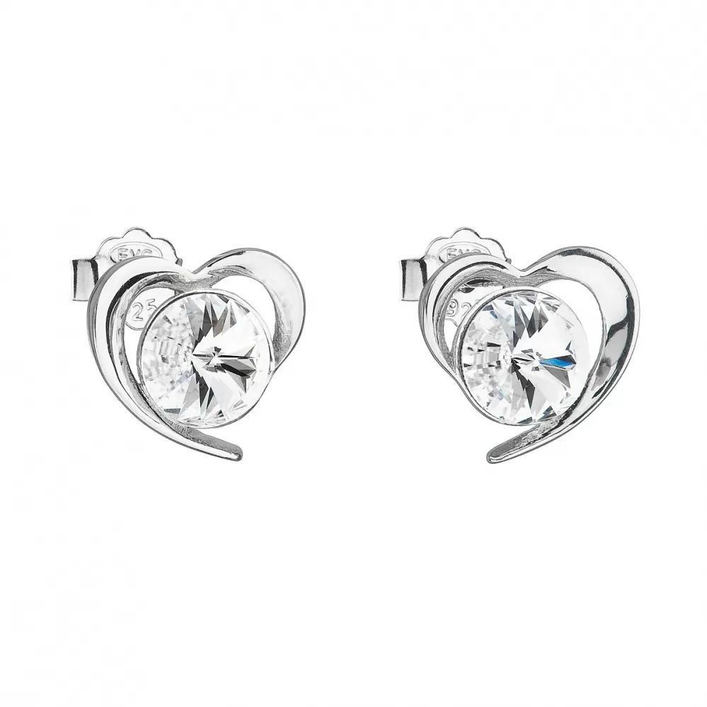 Strieborné náušnice pecka s kryštálmi Swarovski biele srdce 31259.1