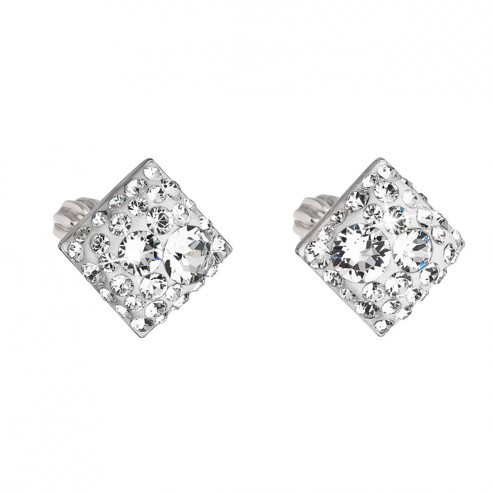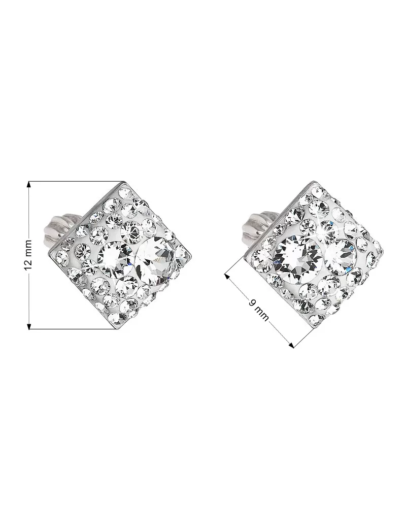 Strieborné náušnice pecka s kryštálmi Swarovski biely kosoštvorec 31169.1