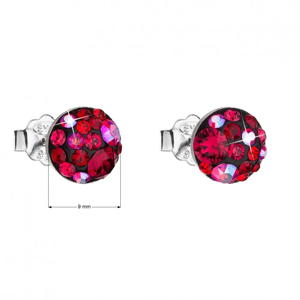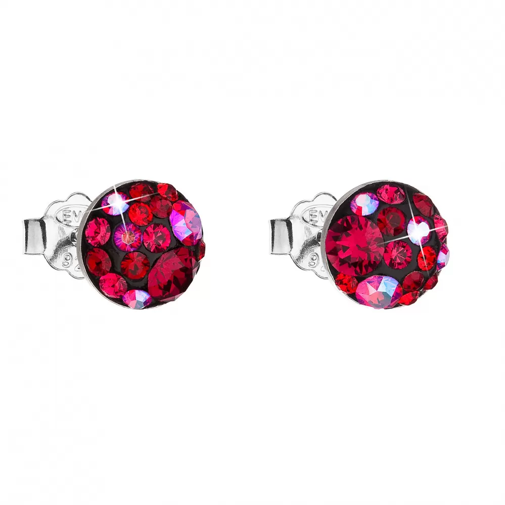Strieborné náušnice pecka s kryštálmi Swarovski červené okrúhle 31136.3 cherry