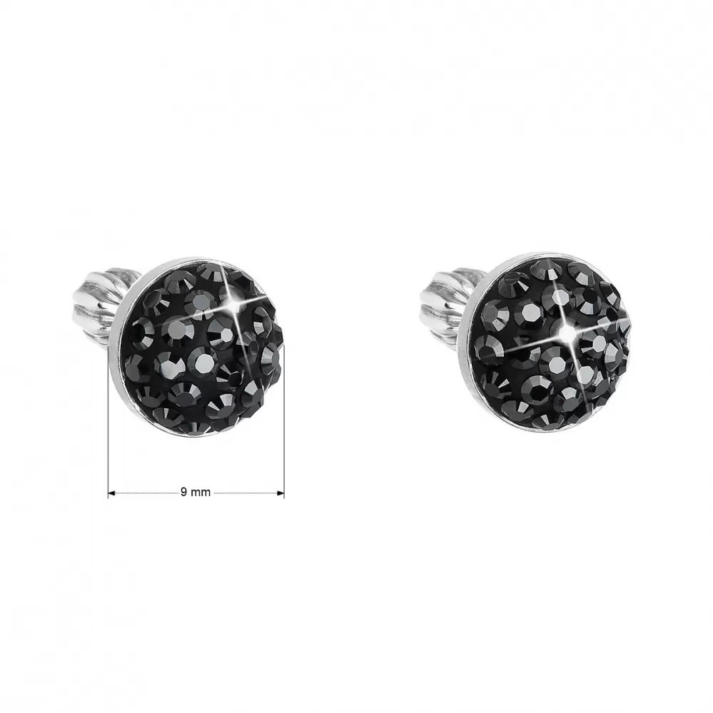 Parametre strieborných náušníc pecka s kryštálmi Swarovski čierne okrúhle 31336.5 hematite