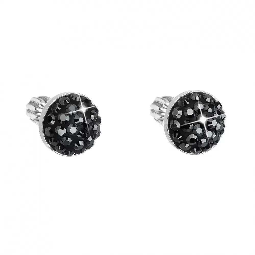 Strieborné náušnice pecka s kryštálmi Swarovski čierne okrúhle 31336.5 hematite
