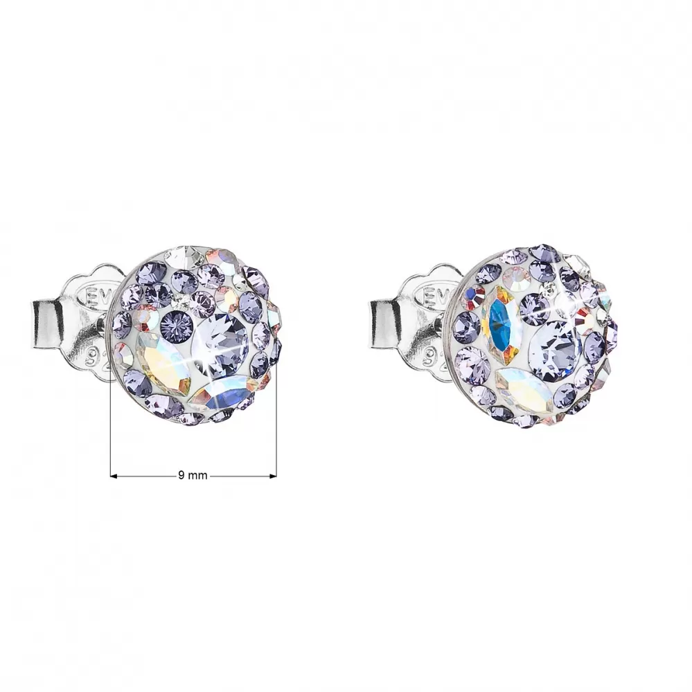 Strieborné náušnice pecka s kryštálmi Swarovski fialové okrúhle 31136.3