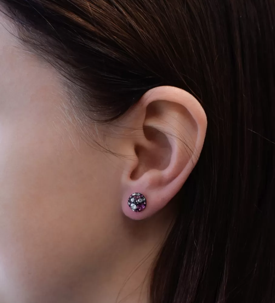 Strieborné okrúhle kôstky náušnice 31336.3 dark amethyst septembra mnohých kryštály Swarovski. Fialová farba kryštálov korešponduje s rhodiovaným striebrom 925/1000, z ktorého sú náušnice vytvorené. Rhodium udrží šperk vo skvelej forme - bez zažltnutia aj sčernania. Zároveň chráni náušnice 31336.3 dark ametyst proti poškriabaniu. Šperk neobsahuje nikel, je teda vhodným darčekom aj pre alergikov.