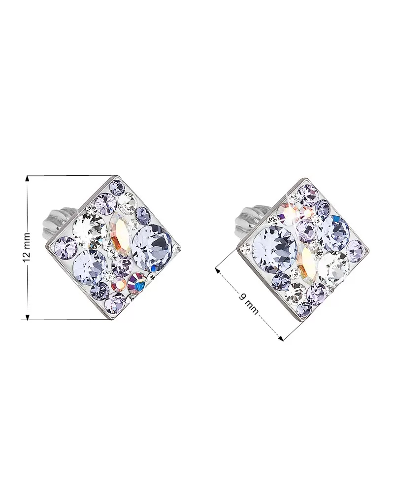 Strieborné náušnice pecka s kryštálmi Swarovski fialový kosoštvorec 31169.3