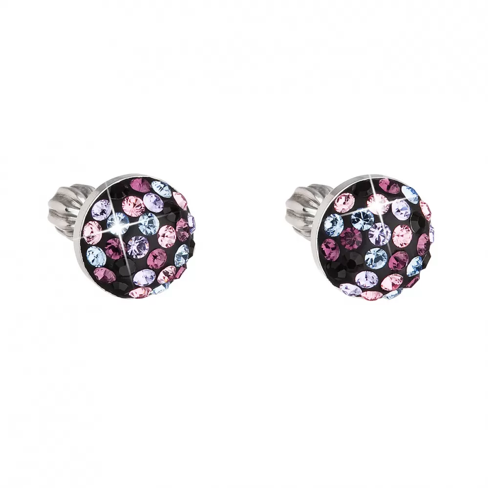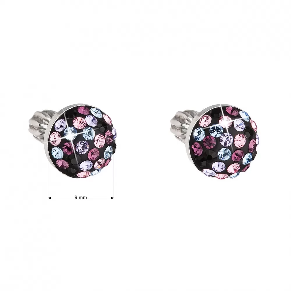 Strieborné náušnice pecka s kryštálmi Swarovski mix farieb okrúhle 31336.3 magic violet
