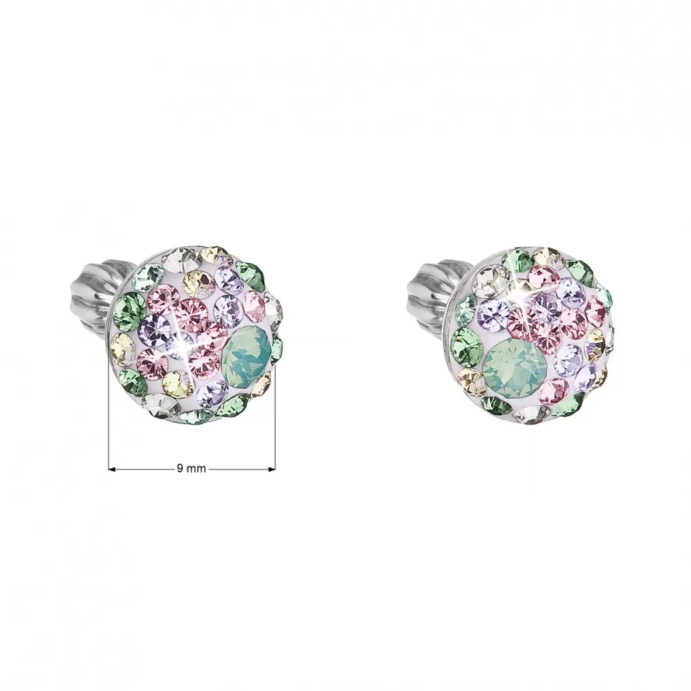 Parametre strieborných náušníc pecka s kryštálmi Swarovski mix farieb okrúhle 31336.3 sakura