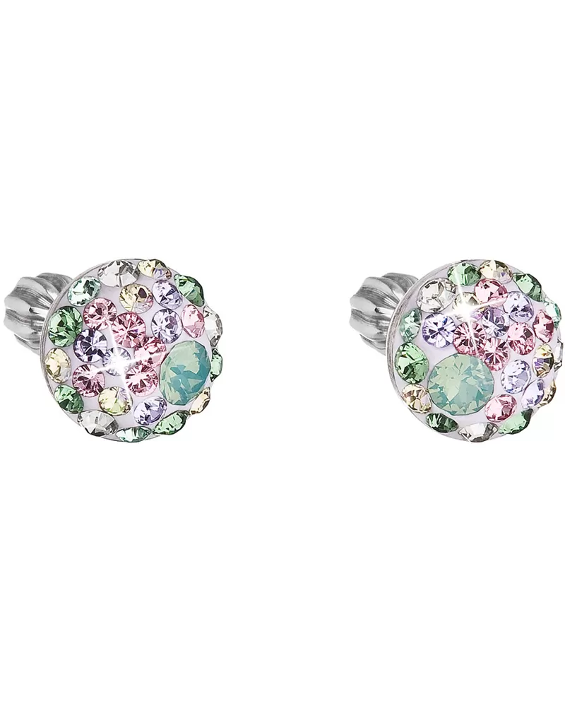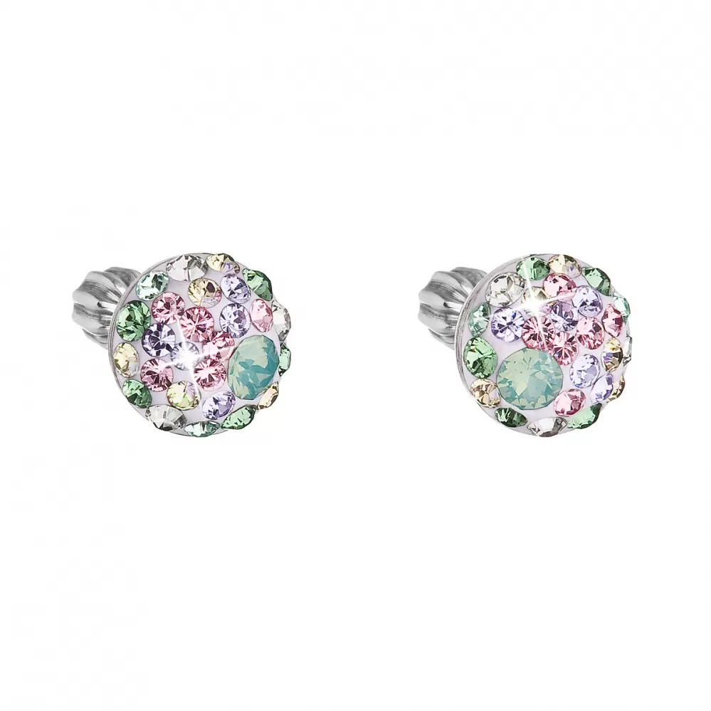 Strieborné náušnice pecka s kryštálmi Swarovski mix farieb okrúhle 31336.3 sakura