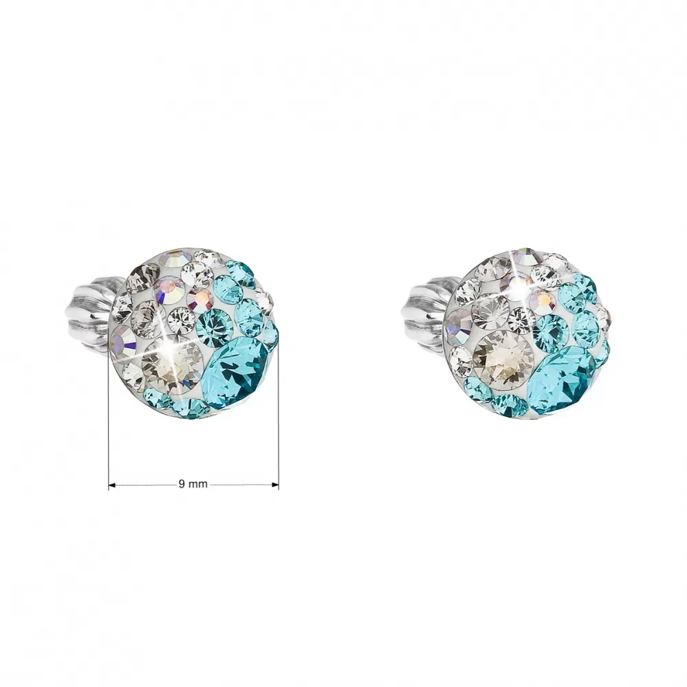 Parametre strieborných náušníc pecka s kryštálmi Swarovski modré okrúhle 31336.3 light turquoise