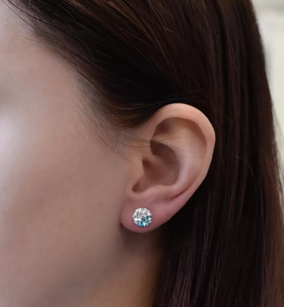 Strieborné okrúhle kôstky náušnice 31336.3 light turquoise žiari mnohými kryštálmi Swarovski. Modrá farba kryštálov korešponduje s rhodiovaným striebrom 925/1000, z ktorého sú náušnice vytvorené. Rhodium udrží šperk vo skvelej forme - bez zažltnutia aj sčernania. Zároveň chráni náušnice 31336.3 light turquoise proti poškriabaniu. Šperk neobsahuje nikel, je teda vhodným darčekom aj pre alergikov.
