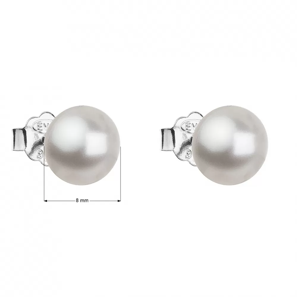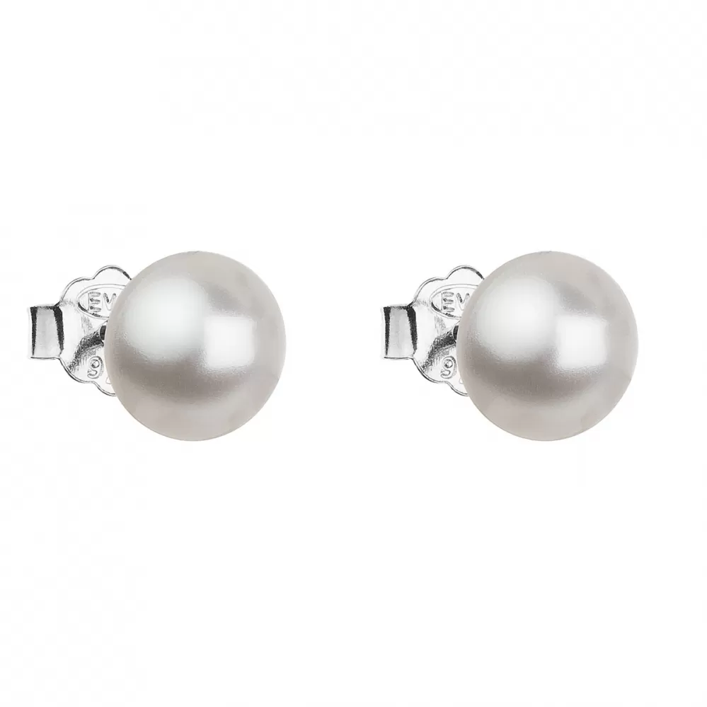 Strieborné náušnice pecka s perlou Swarovski biele okrúhle 31142.1