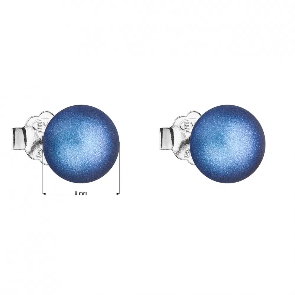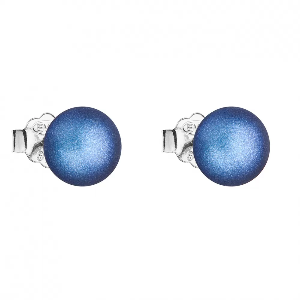 Strieborné náušnice pecka s tmavomodrou matnou perlou 31142.3