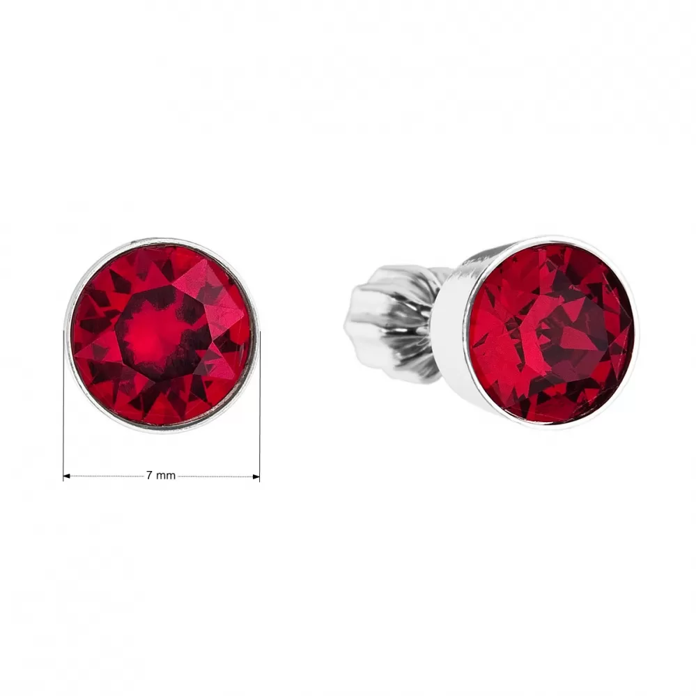 Parametre strieborných náušníc kôstok so Swarovski kryštálmi červené okrúhle 31113.3 ruby