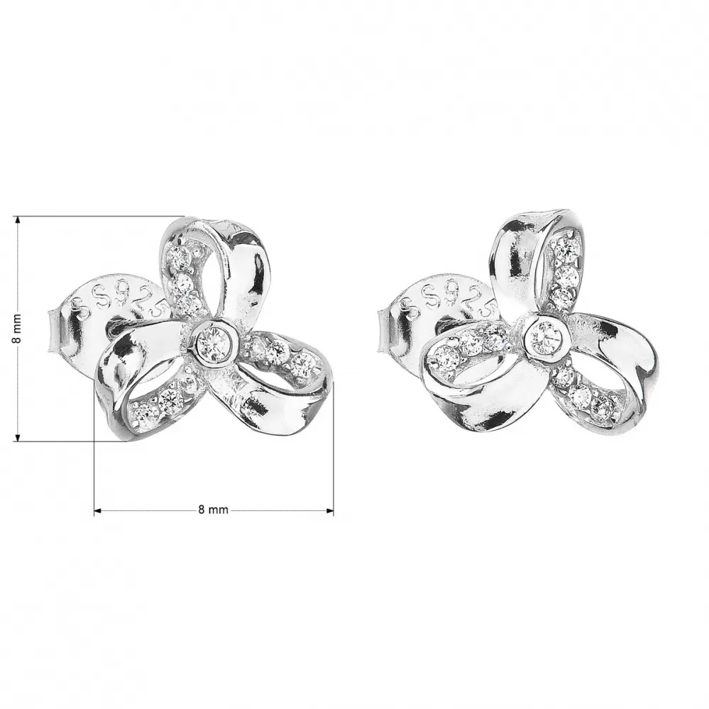 Náušnice kôstky 11095.1 tvoria striebro rýdzosti 925/1000. Na povrchu je nanesené ródium, ktoré zabraňuje černeniu a žltnutiu. Ródium chráni náušnice aj proti oderu. Zapínanie náušníc tvorí puzeta, ktorá spoľahlivo drží. Náušnice 11095.1 neobsahujú žiadny nikel. Sú teda vhodným darčekom i pre alergikov. Náušnice zdobia mnoho malých zirkónov v bielom prevedení, jeden väčší je umiestnený uprostred mašličky.