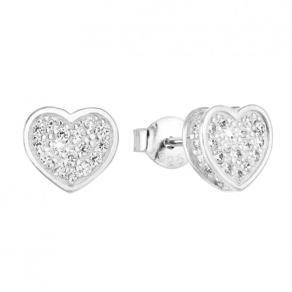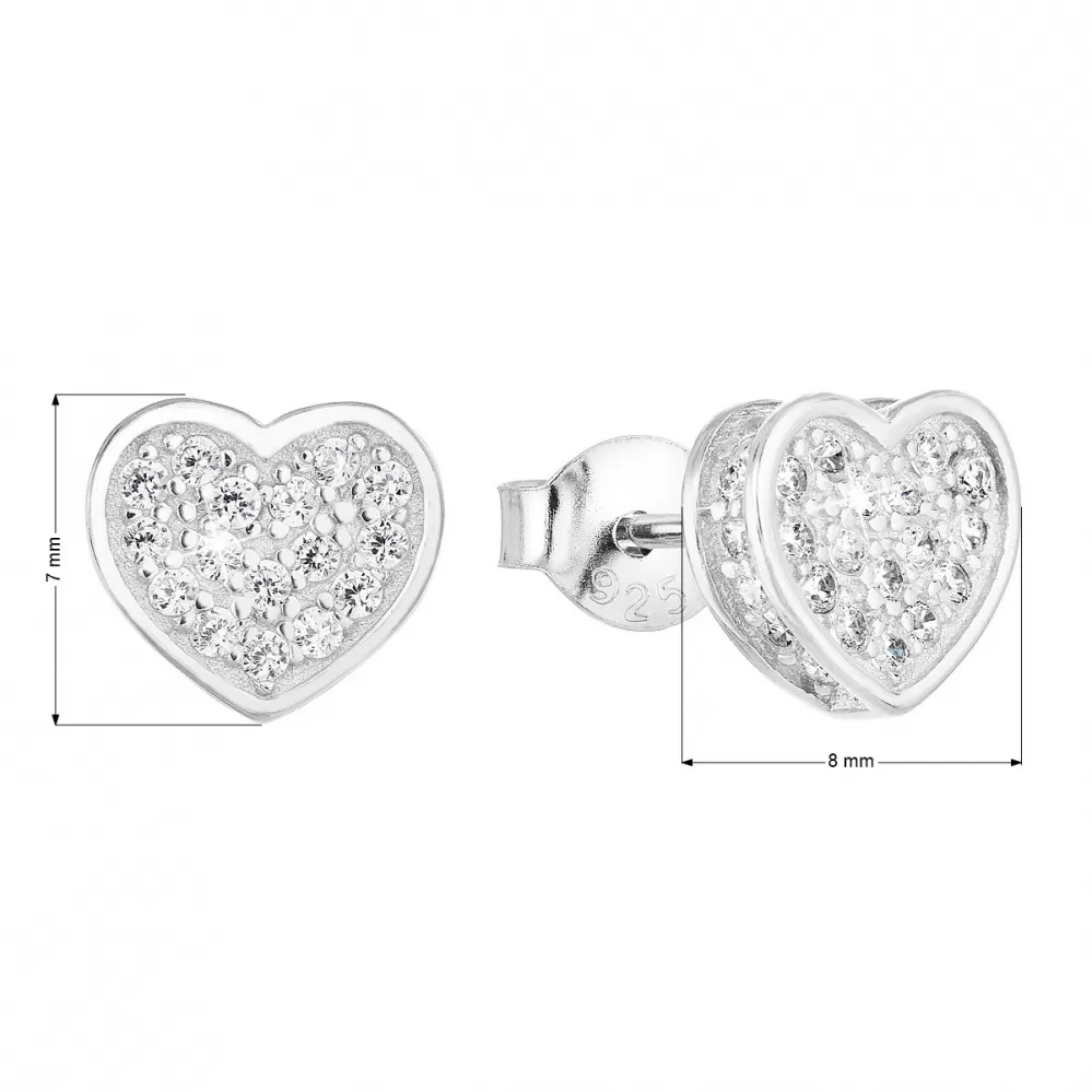 Strieborné náušnice pecka so zirkónom biele srdce 11032.1
