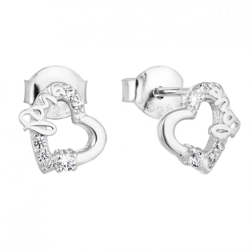 Strieborné náušnice pecka so zirkónom biele srdce 11051.1