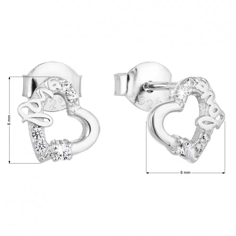 Parametre strieborných náušníc pecka so zirkónom biele srdce 11051.1