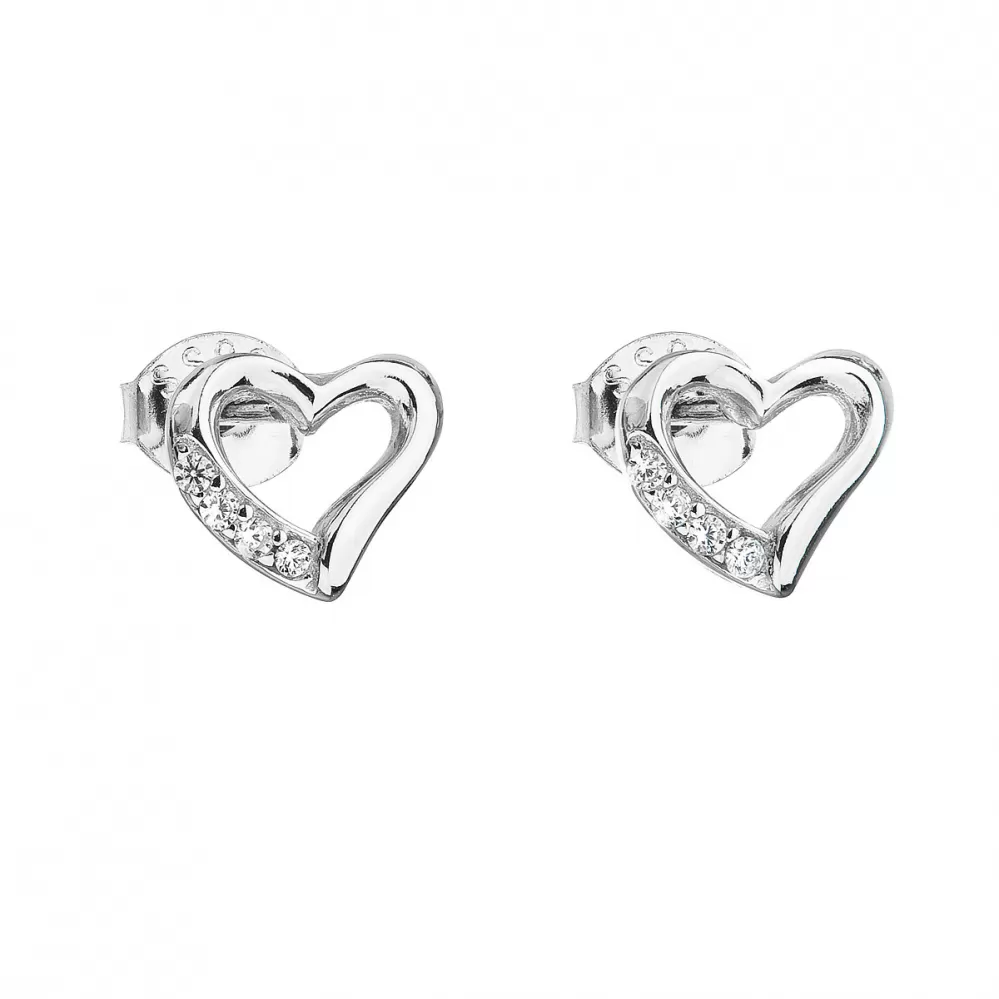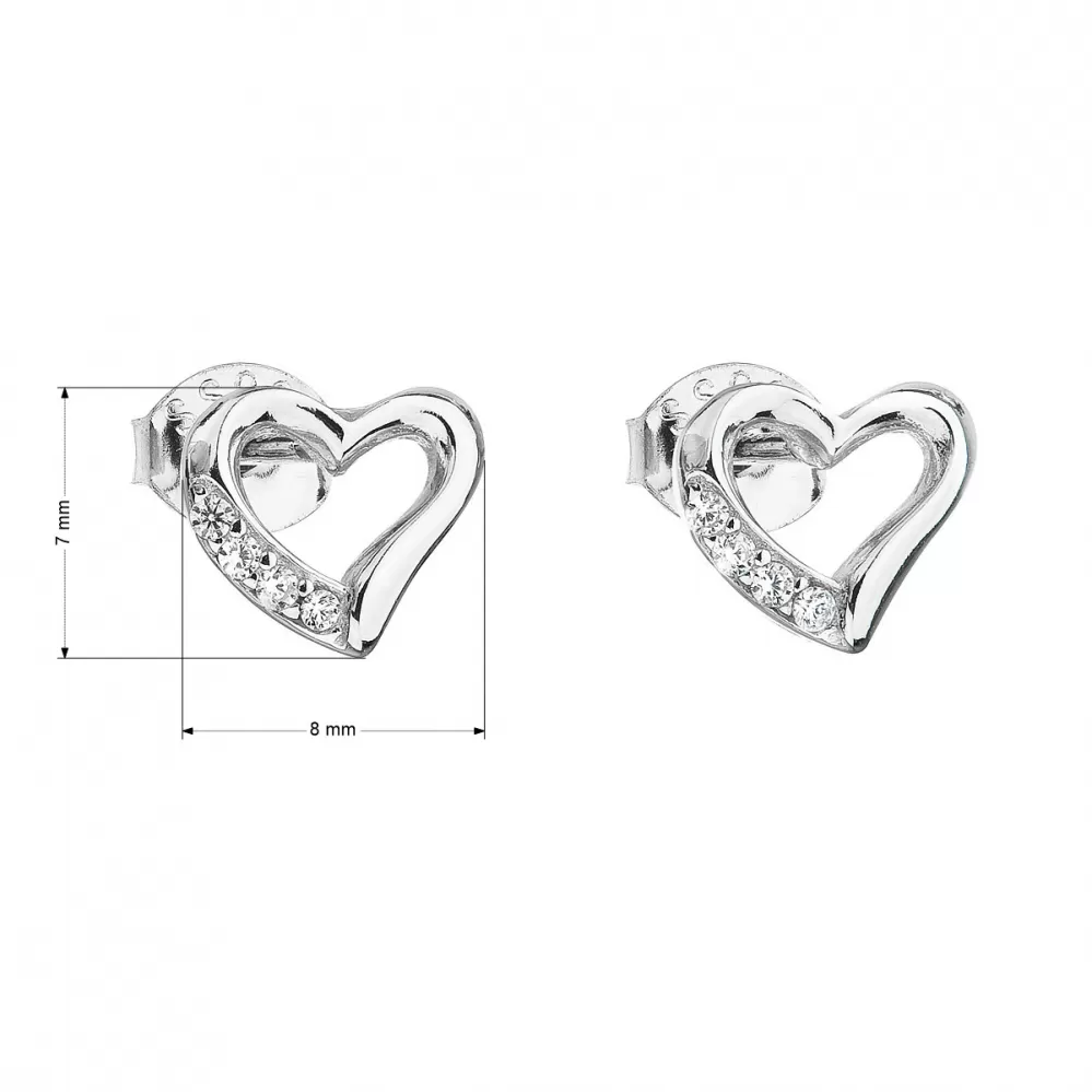 Strieborné náušnice pecka so zirkónom biele srdce 11071.1