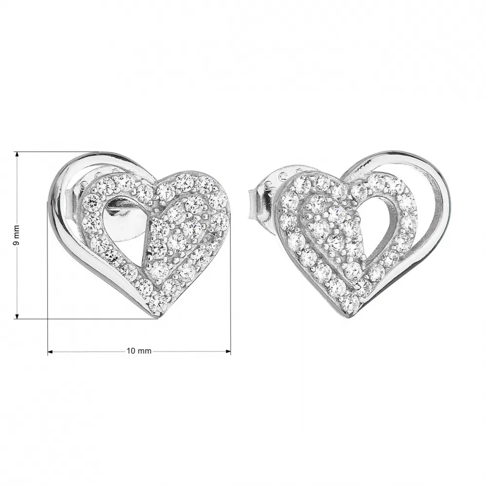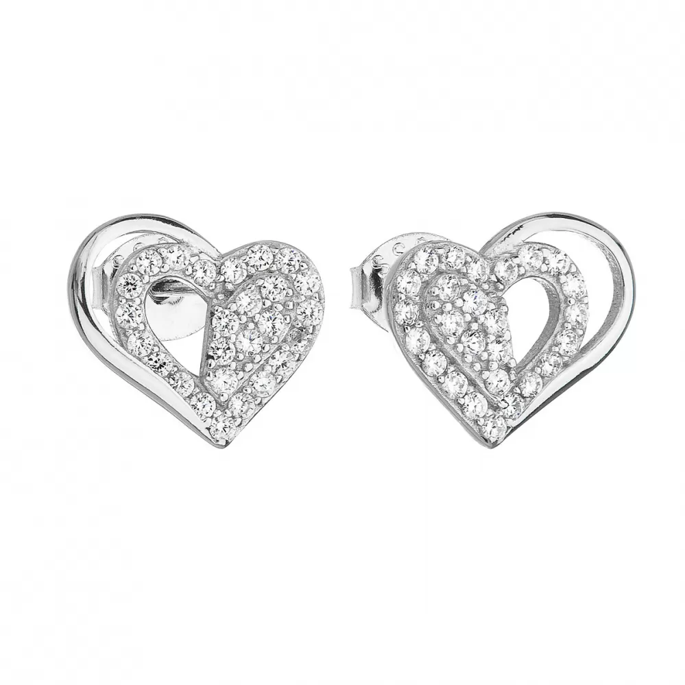 Strieborné náušnice pecka so zirkónom biele srdce 11115.1