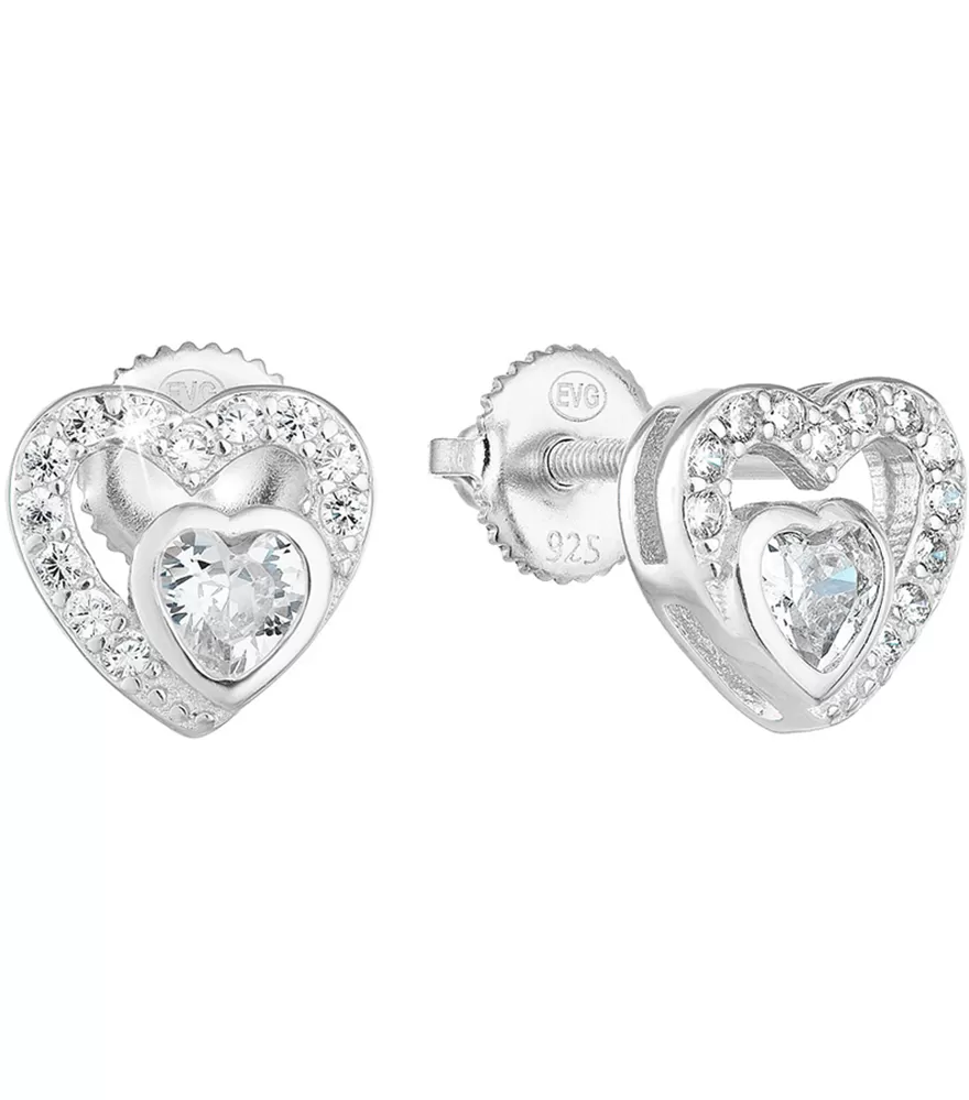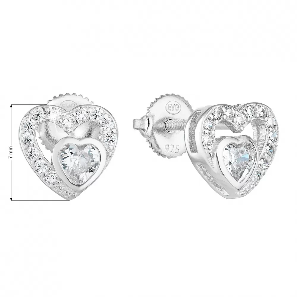 Strieborné náušnice pecka so zirkónom biele srdce 11288.1