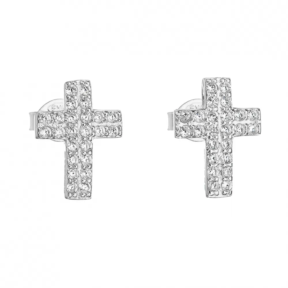 Strieborné náušnice pecka so zirkónom biely krížik 11068.1