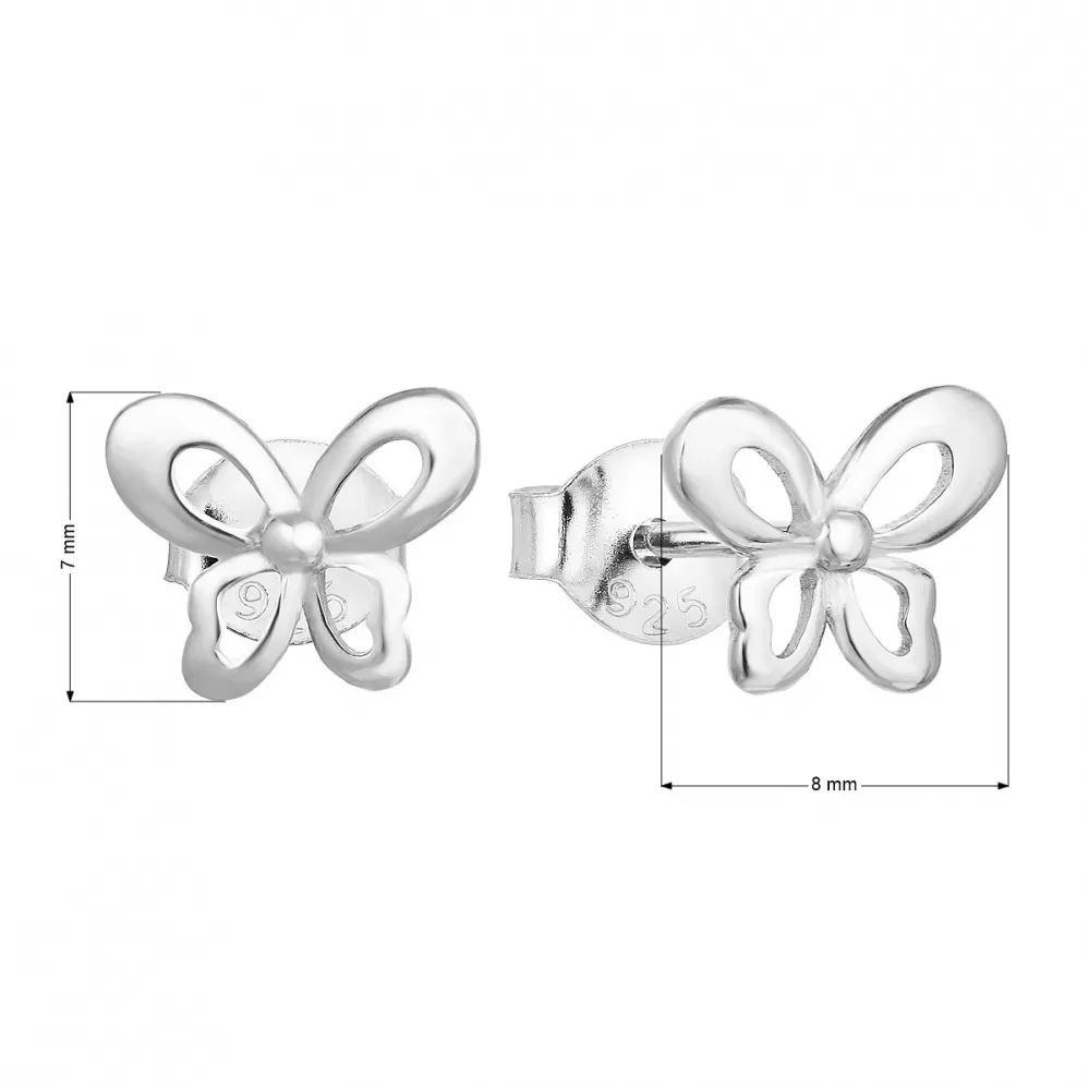 Parametre strieborných náušníc pecka biely motýľ 11060.1