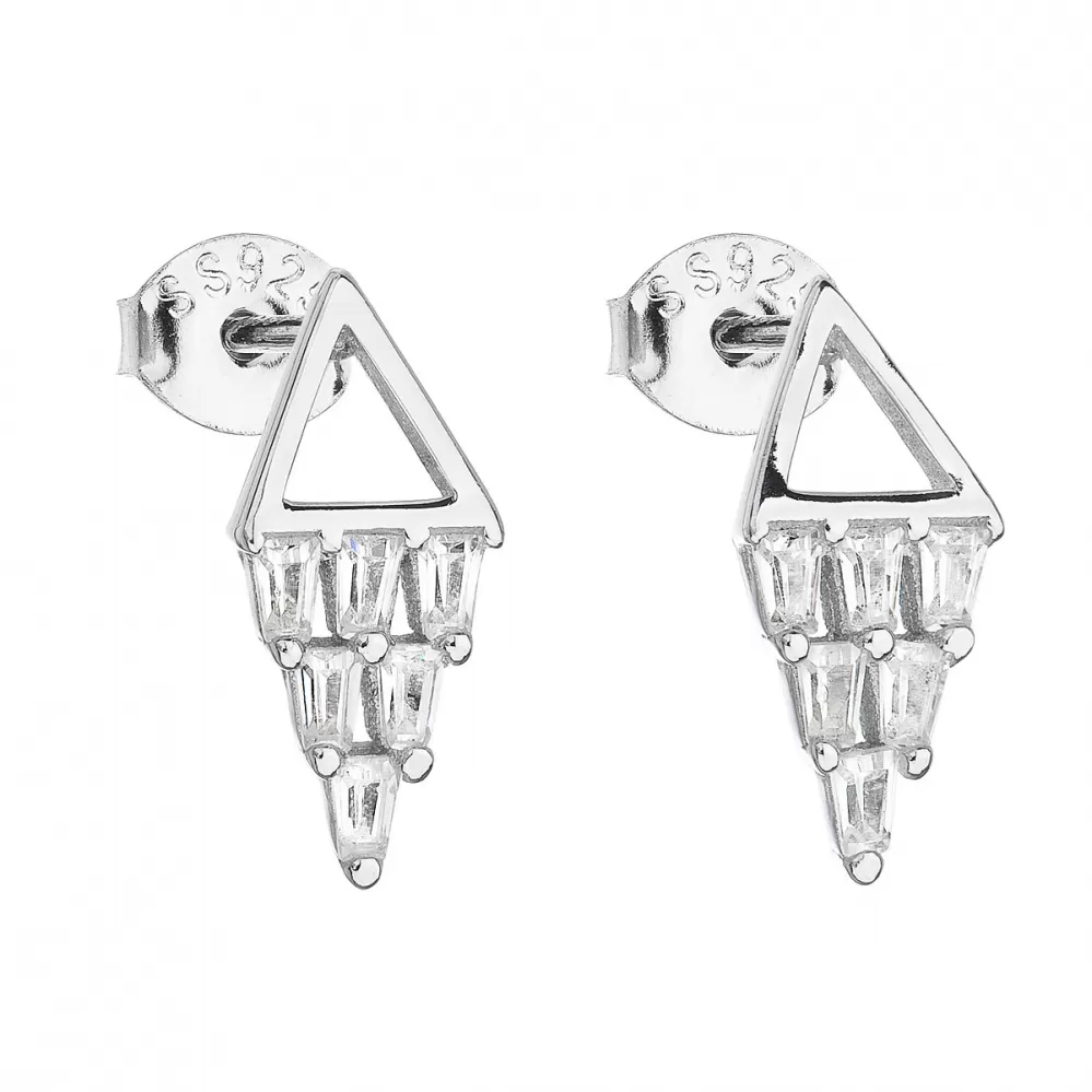 Strieborné náušnice pecka so zirkónom biely trojuholník 11118.1