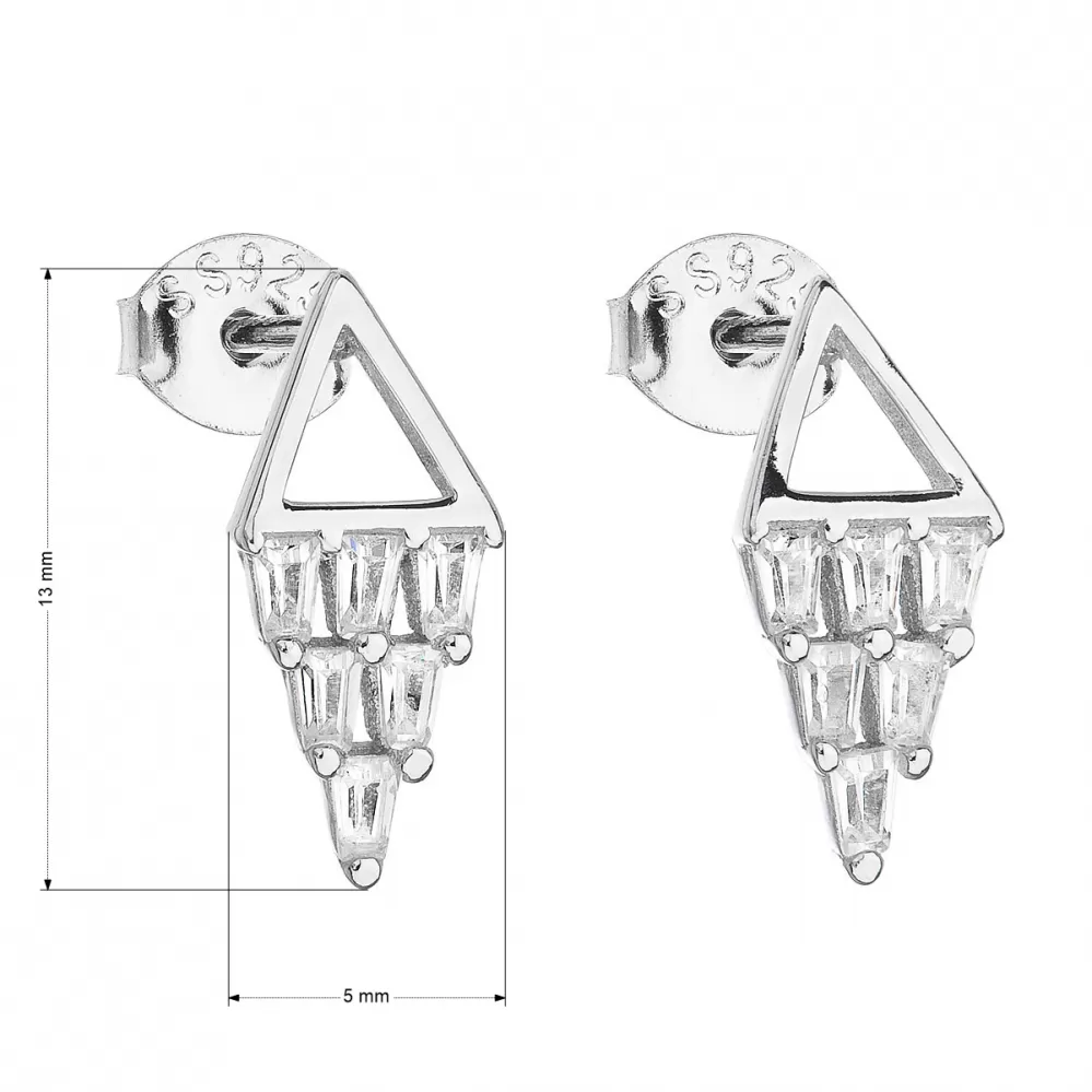 Parametre strieborných náušníc pecka so zirkónom biely trojuholník 11118.1