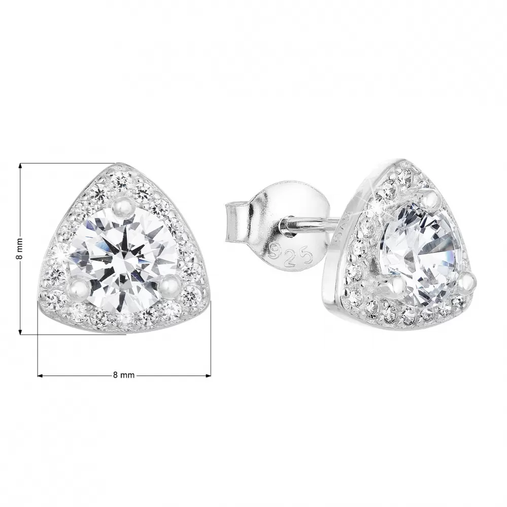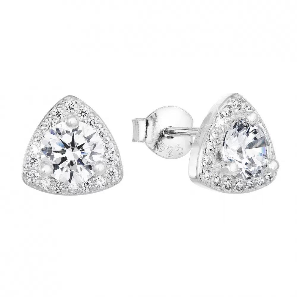 Náušnice sú tvaru trojuholníčkov a sú zdobené bielymi zirkónmi, ktoré šperk doslova rozžiaria. Zapínanie na puzete sa postará o to, aby náušnice na ušiach pohodlne držali.