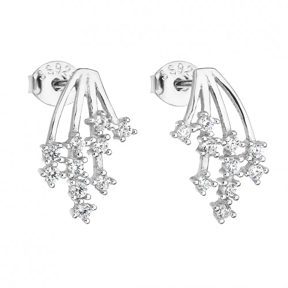 Strieborné náušnice pecka so zirkónom v bielej farbe 11093.1