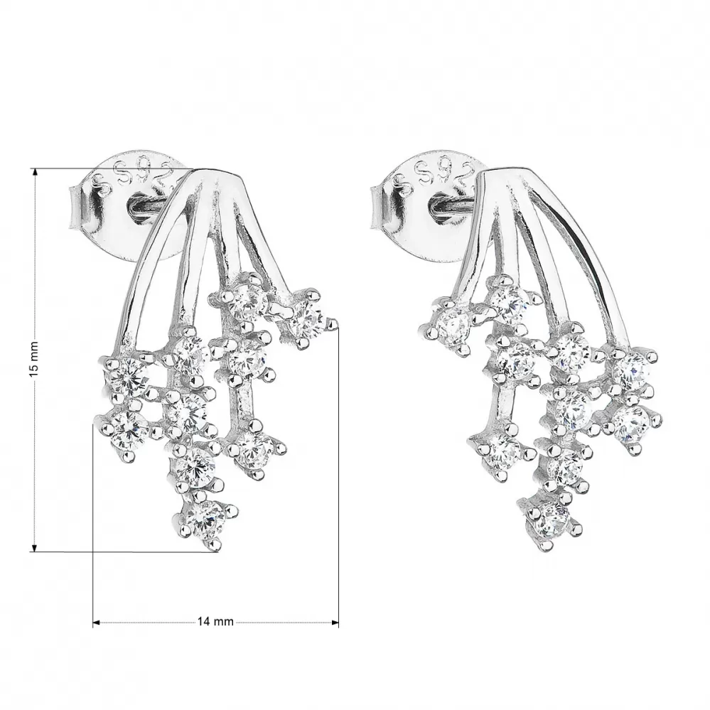 Parametre strieborných náušníc pecka so zirkónom v bielej farbe 11093.1