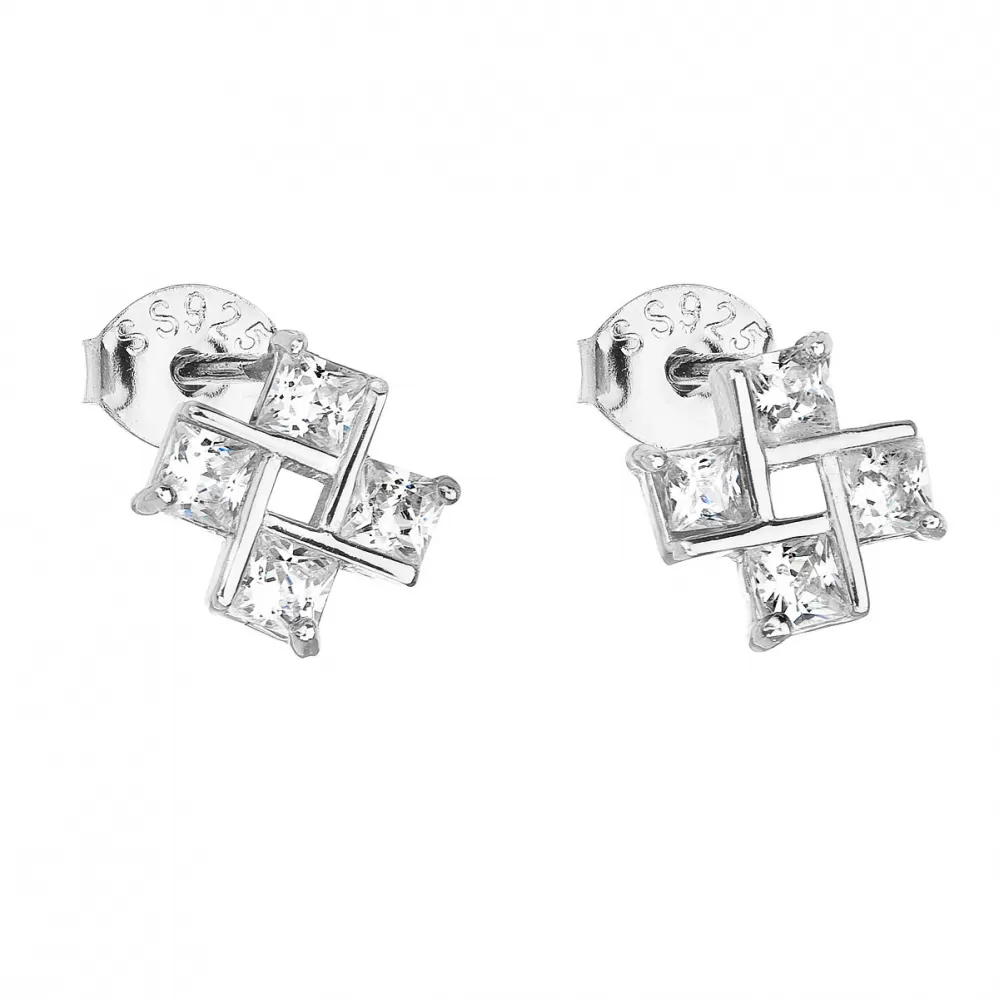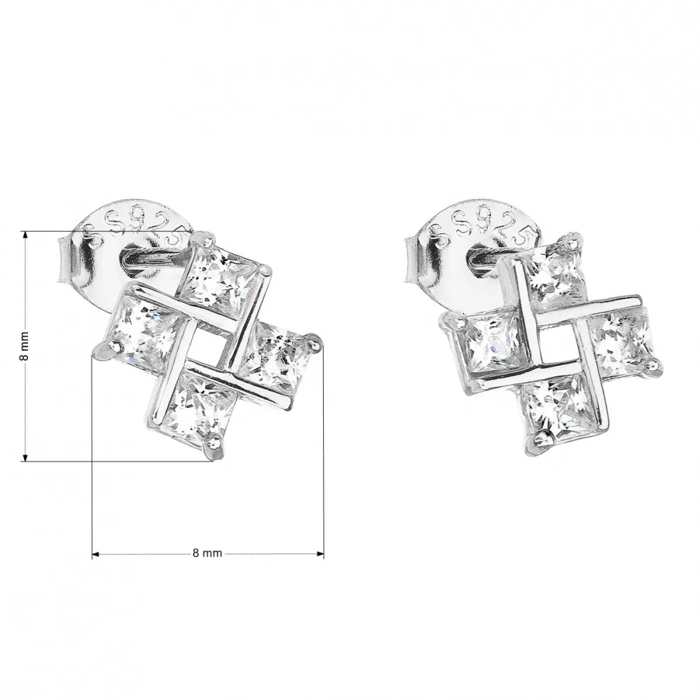 Náušnice zdobia štyri číre zirkóny poskladané do tvaru veterníka. Náušnice zapnete na puzete, vďaka ktoré pekne drží na uchu.