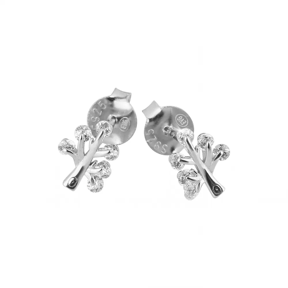 Strieborné náušnice stromčeky s listami zo zirkónov 11532.1 crystal