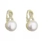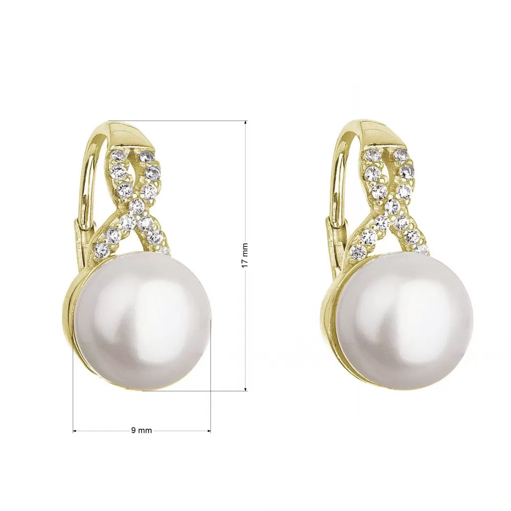 Pozlátené náušnice visiace s bielou riečnou perlou a zirkónmi 21048.1
