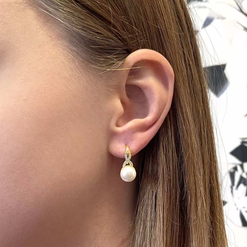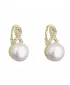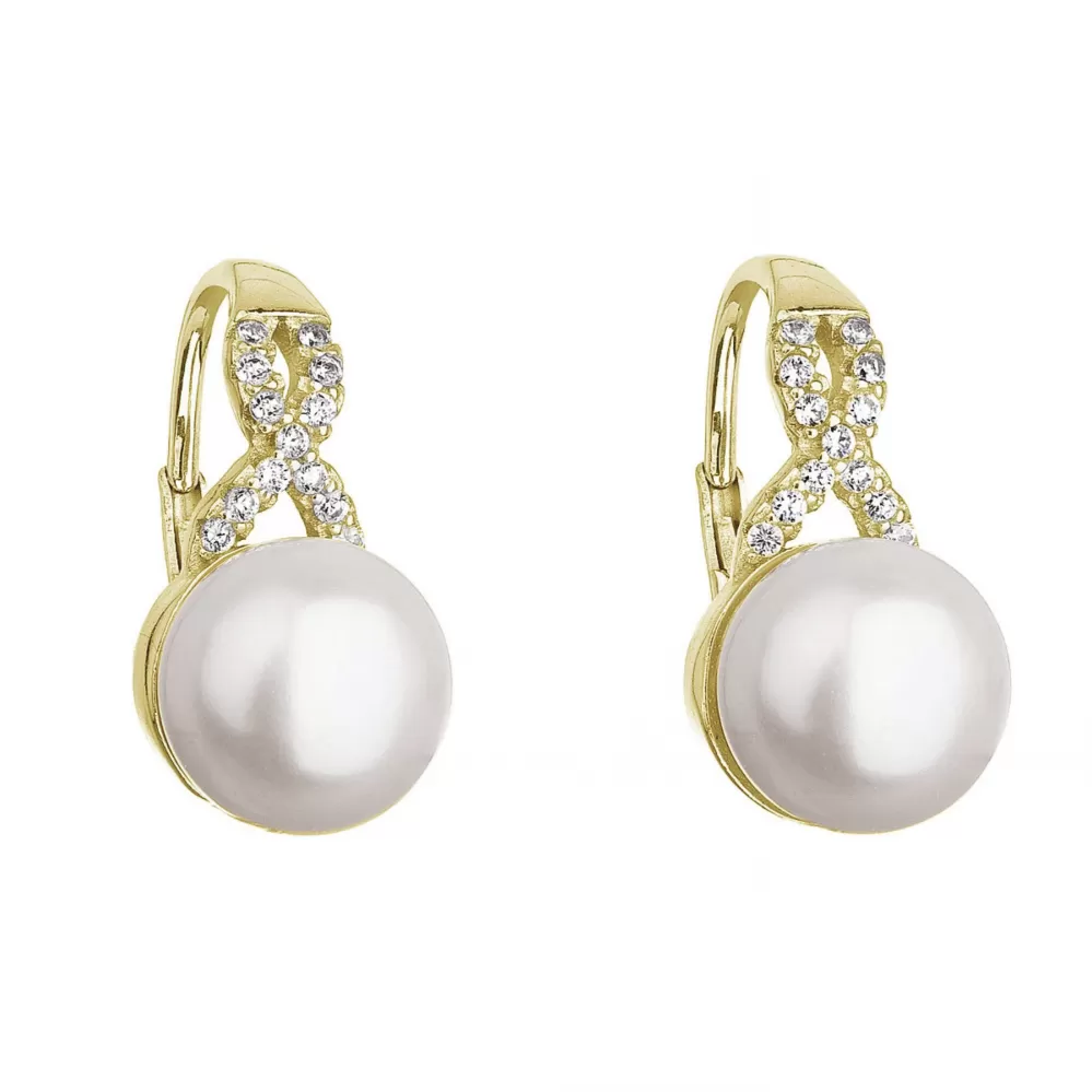 Pozlátené náušnice s bielou riečnou perlou a trblietavými zirkónmi sú očarujúcou kombináciou.