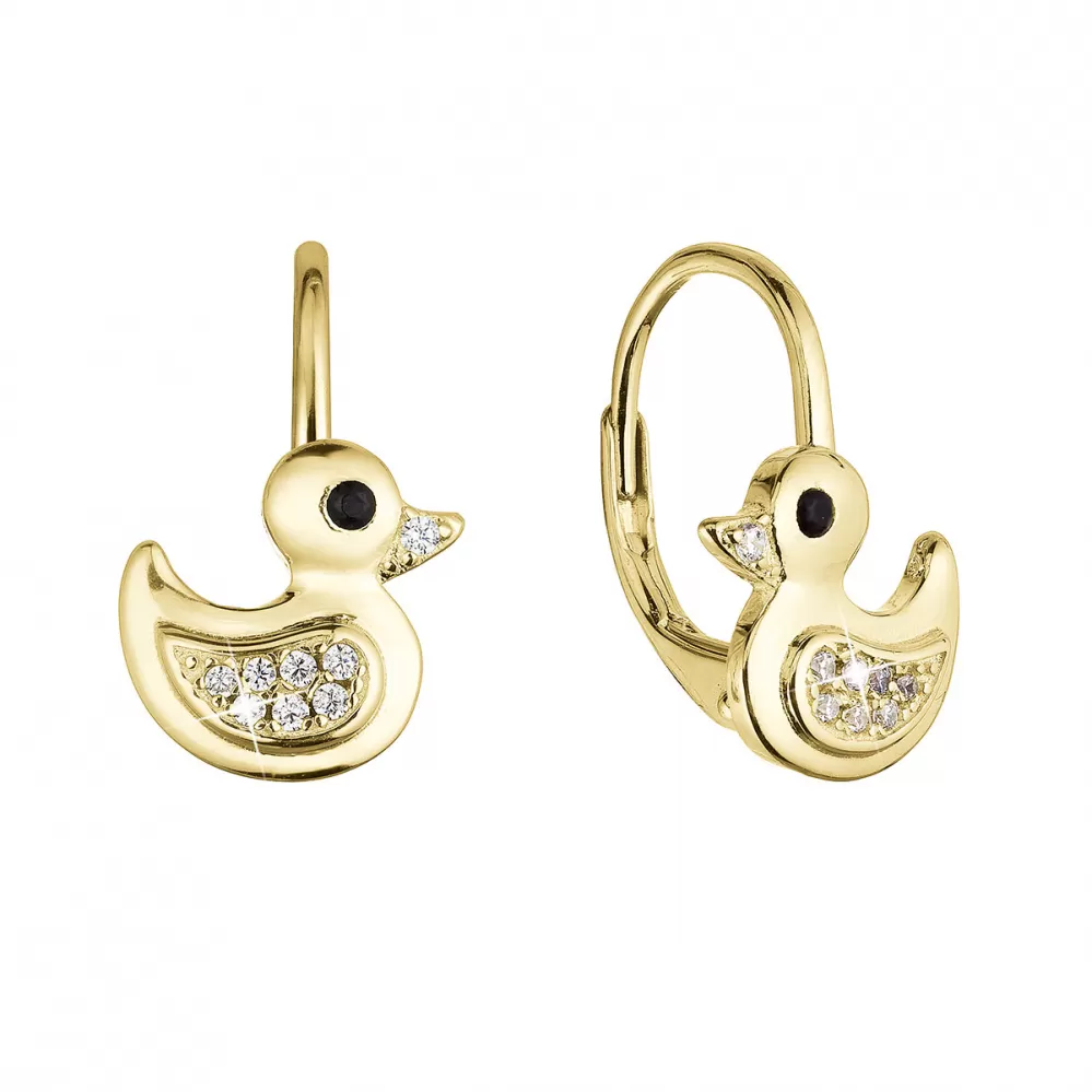 Pozlátené strieborné náušnice kačičky so zirkónmi 11499.1 crystal
