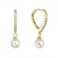 Elegantne prevedené a pôvabne zdobené - presne také sú jedinečné pozlátené visiace náušnice 11426.1 zdobené zirkónmi a shell perličkou.