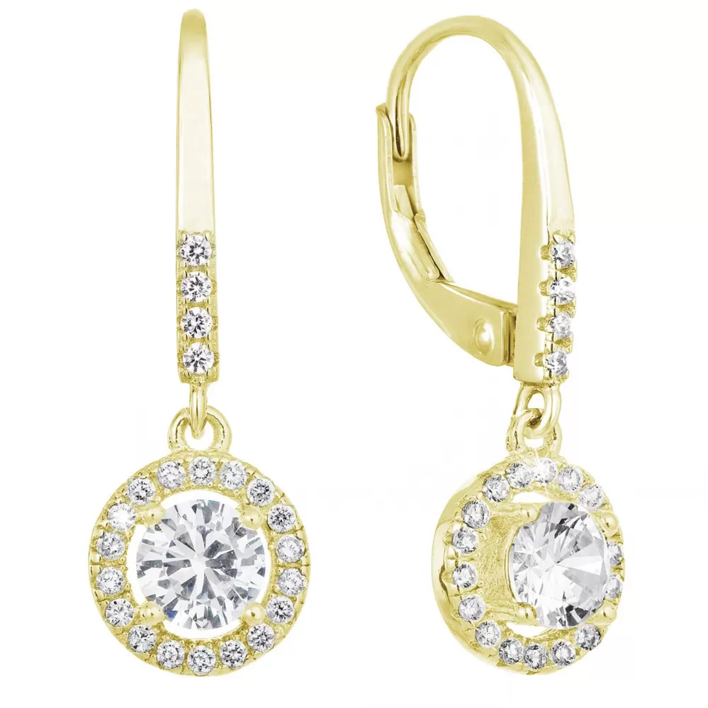 Pozlátené strieborné náušnice visiace so zirkónmi biele okrúhle 11300.1