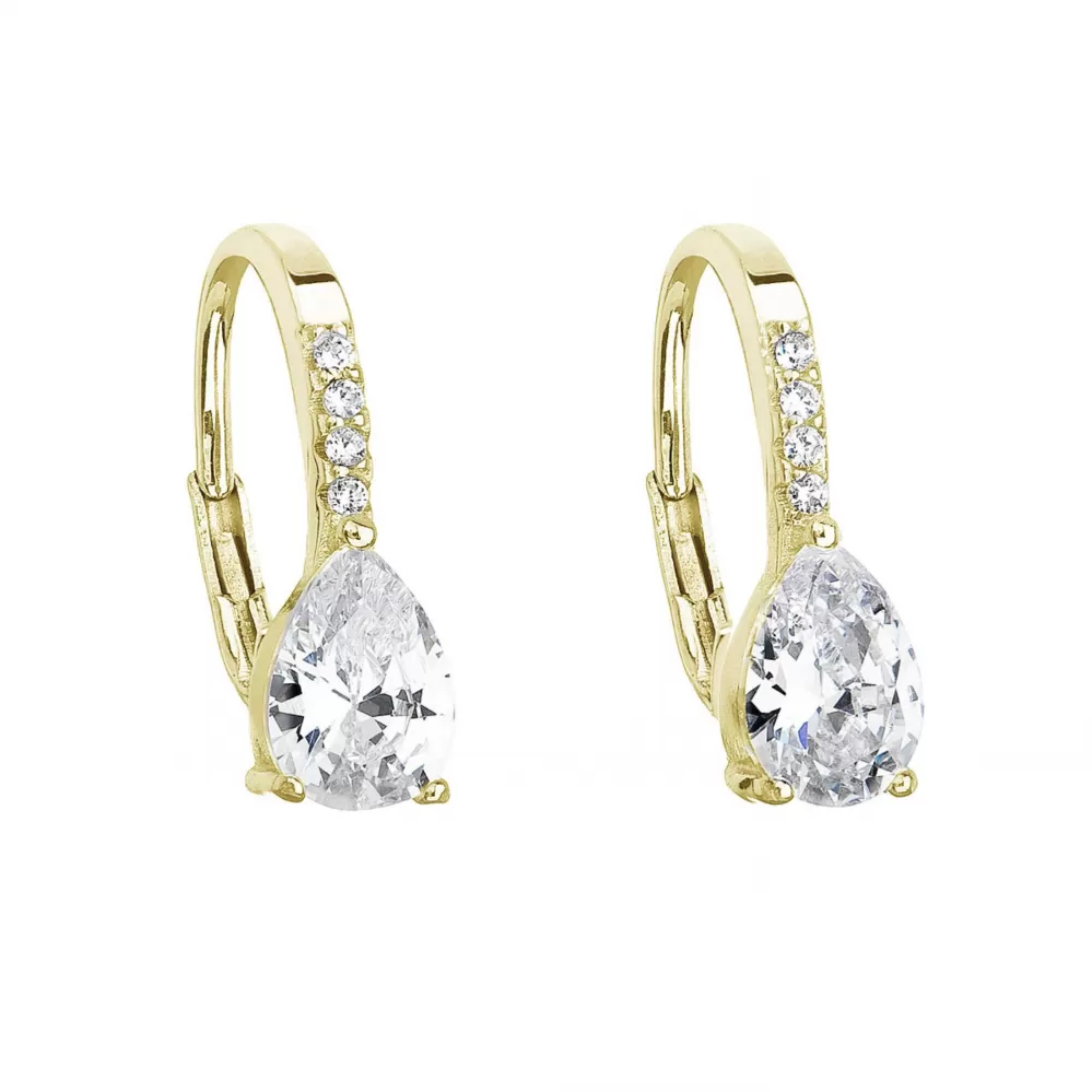 Pozlátené náušnice visiace so zirkónom biela slza 11206.1