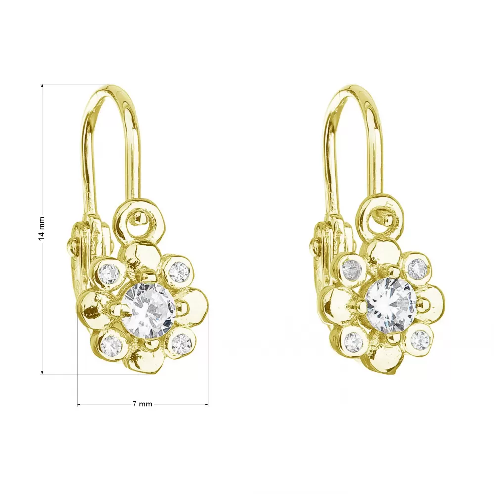 Parametre pozlátených strieborných detských náušníc so zirkónmi biela kvietka 11174.1