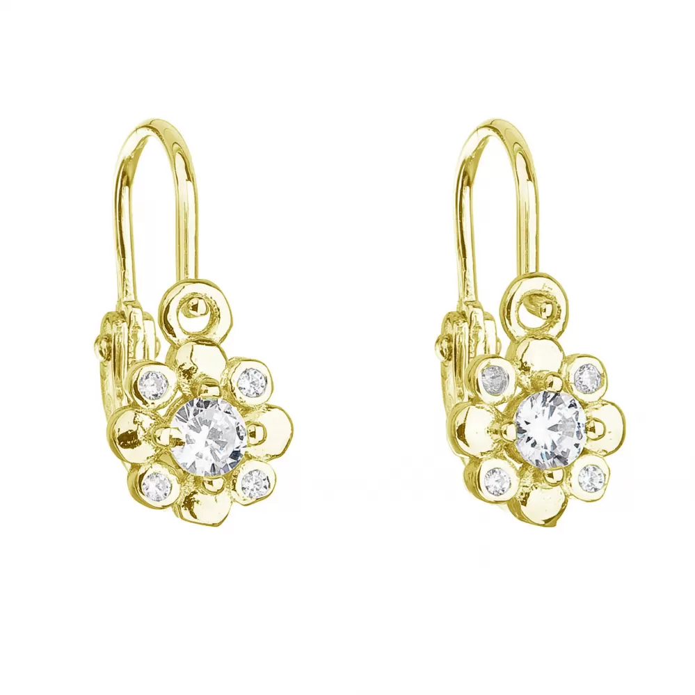 Pozlátené strieborné detské náušnice visiace so zirkónom biela kvietka 11174.1