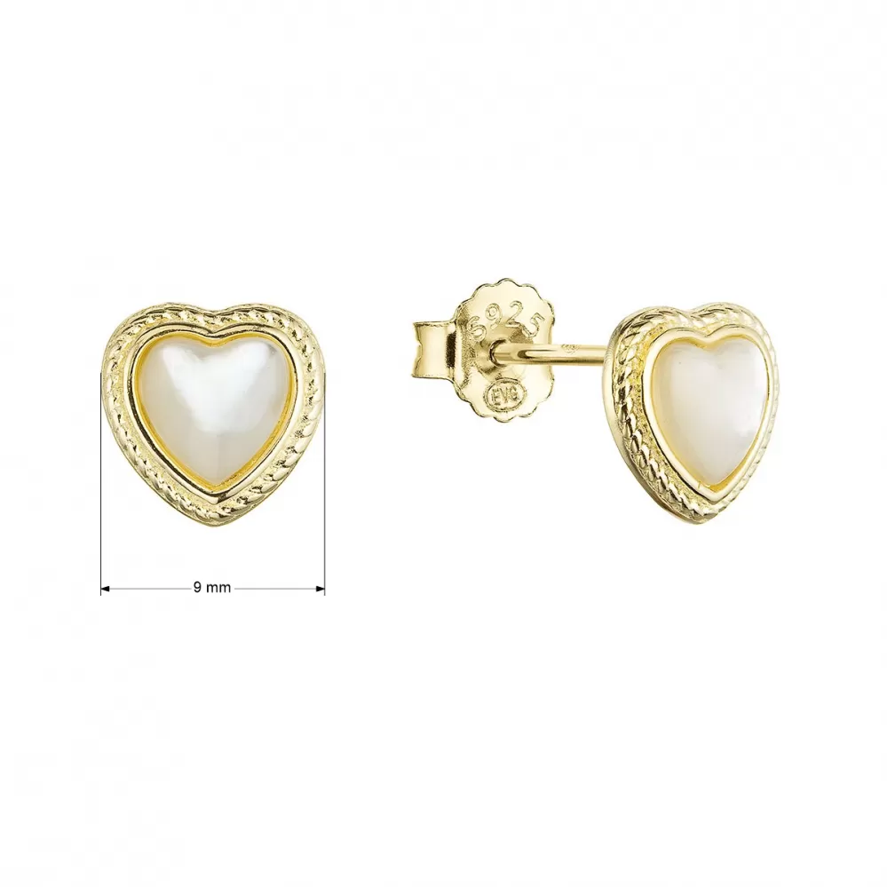 Pozlátené strieborné náušnice kôstky srdca s perleťovým zirkónom 11433.1 perleť