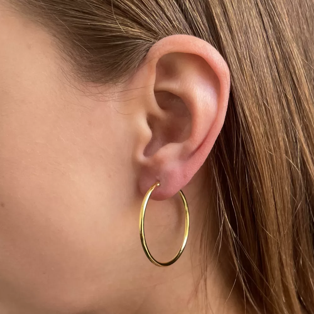 Pozlátené strieborné náušnice typu kruhy61005 sú vyrobené zo striebra rýdzosti 925/1000. Náušnice majú dĺžku 35 mm a zapínanie na krúžok. Šperk 61005 neobsahuje nikel, a tak sa nemusíte obávať alergickej reakcie.