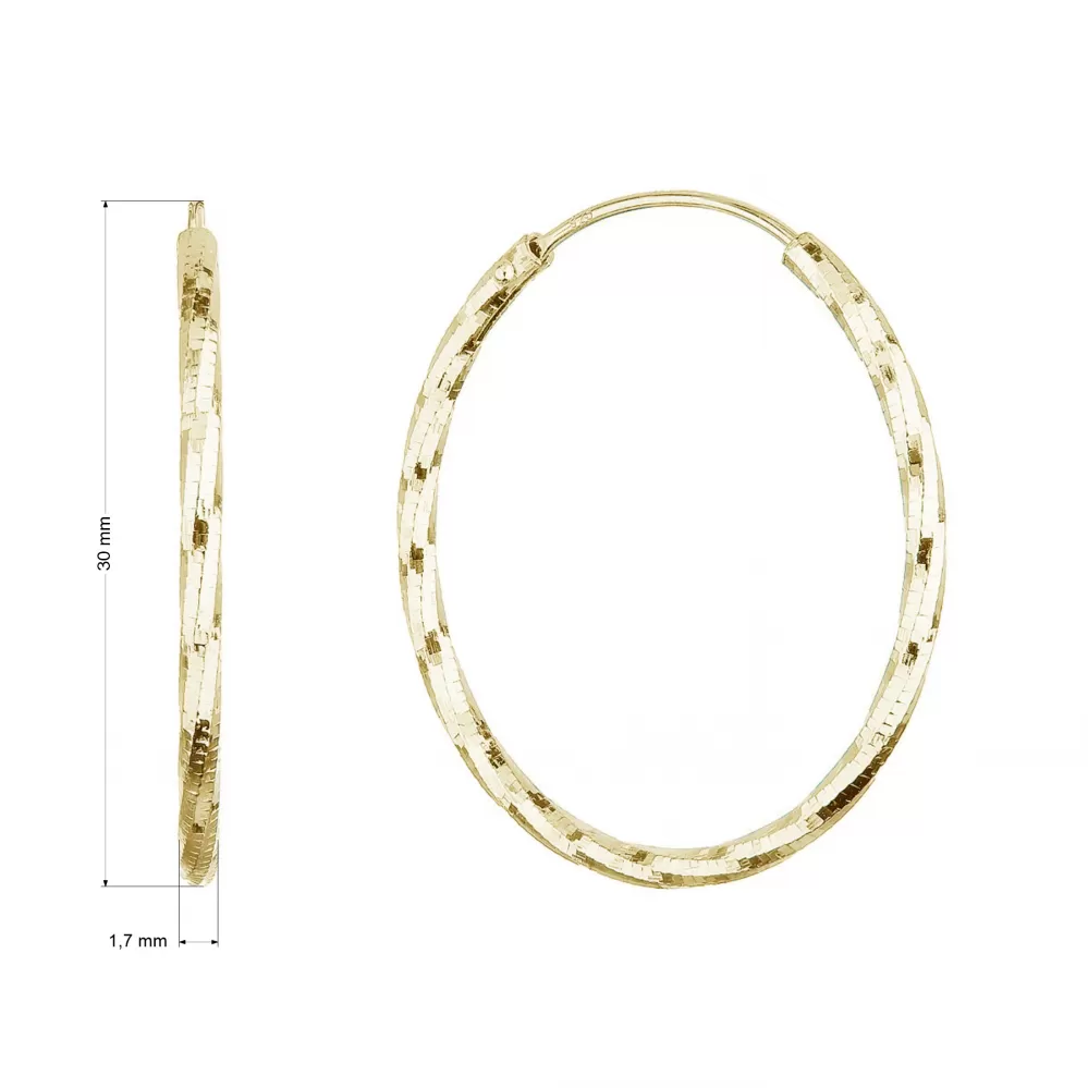 Parametre pozlátených strieborných náušníc kruhy s ozdobným prelisovaním 61007
