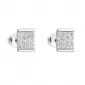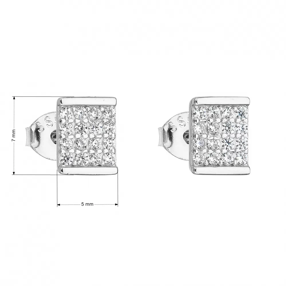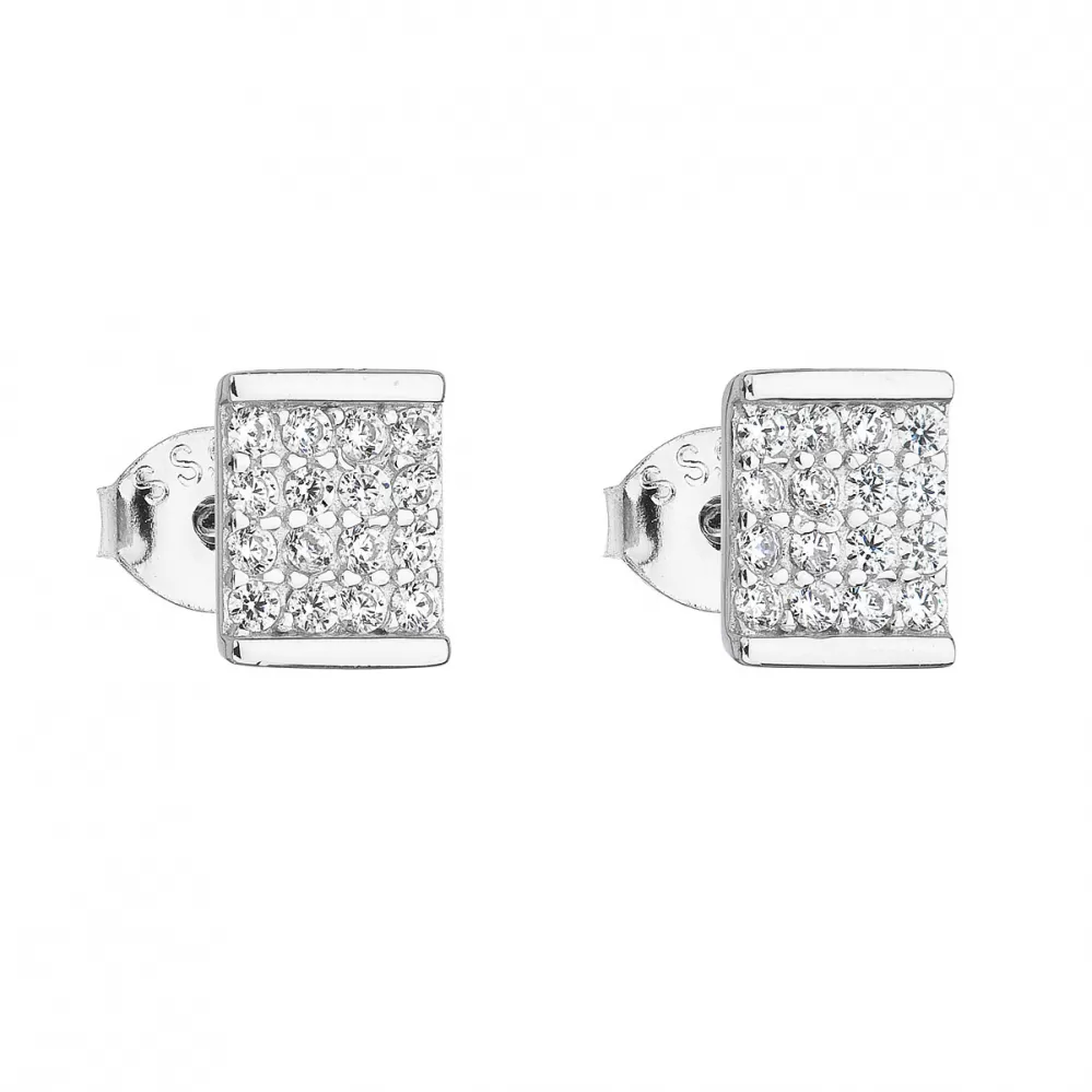 Náušnice zdobia číre zirkóny poskladané do tvaru štvorca, ktorý je lemovaný strieborným rámom. Náušnice zapnete na puzetu.