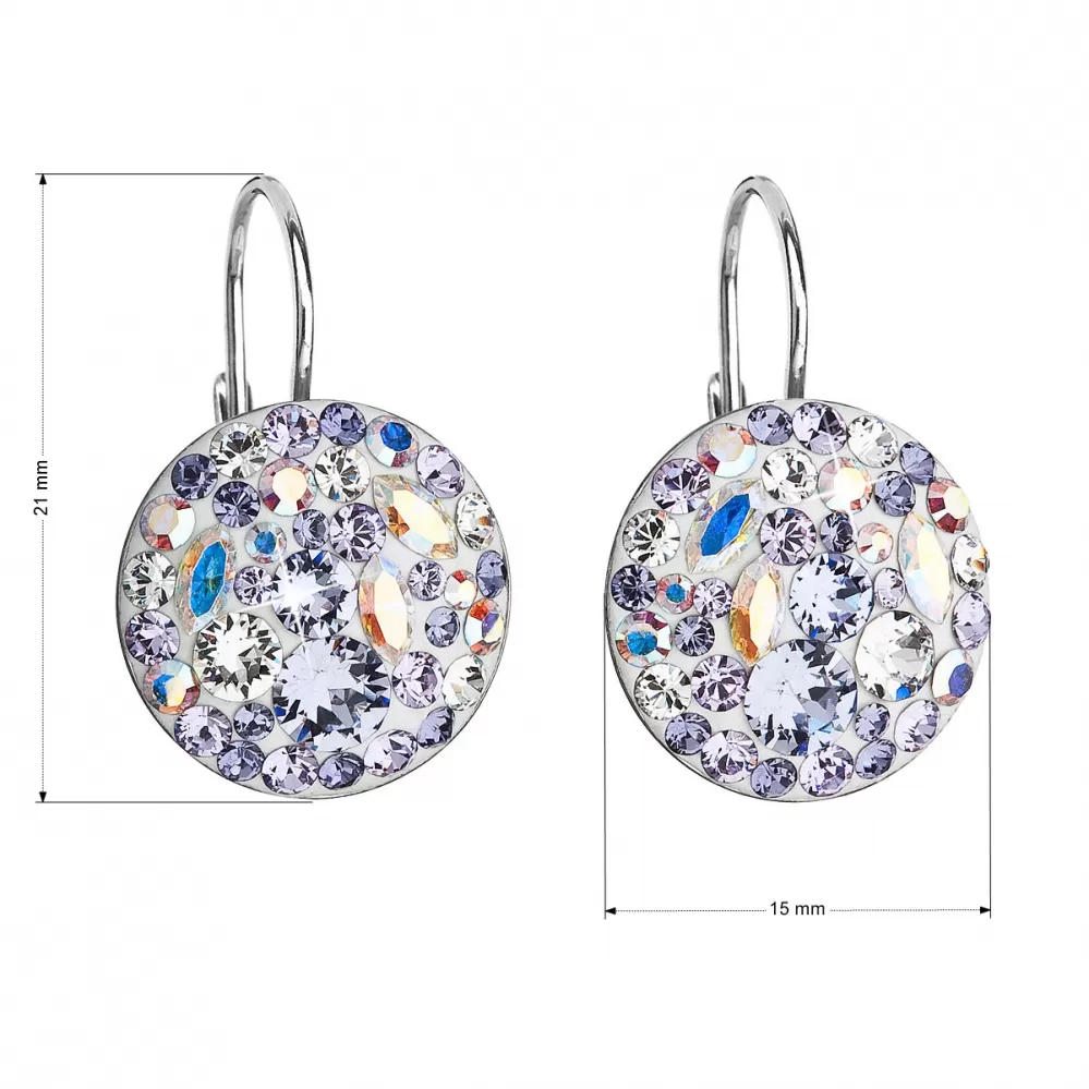 Parametre strieborných náušníc visiace s kryštálmi Swarovski fialové okrúhle 31176.3 violet