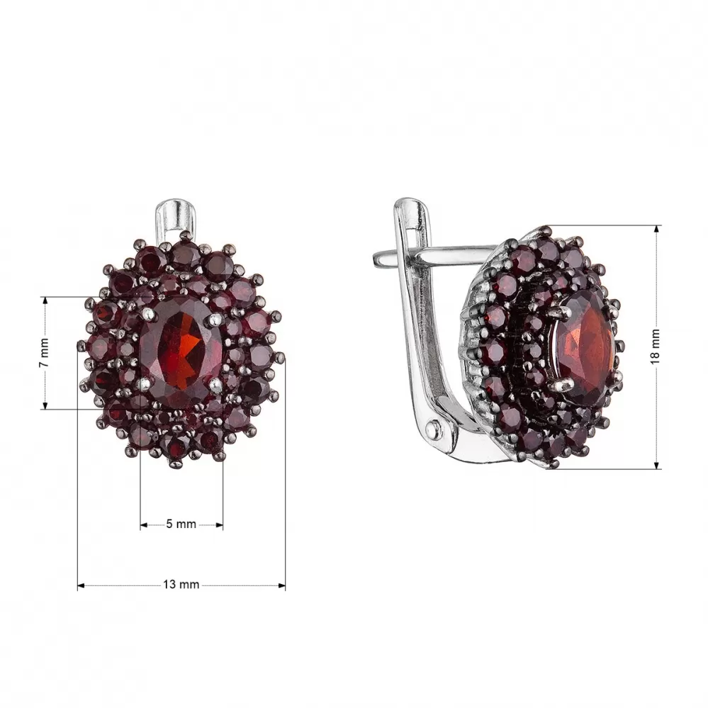 Strieborné náušnice bohato osadené červenými pravými kameňmi 11497.3 garnet