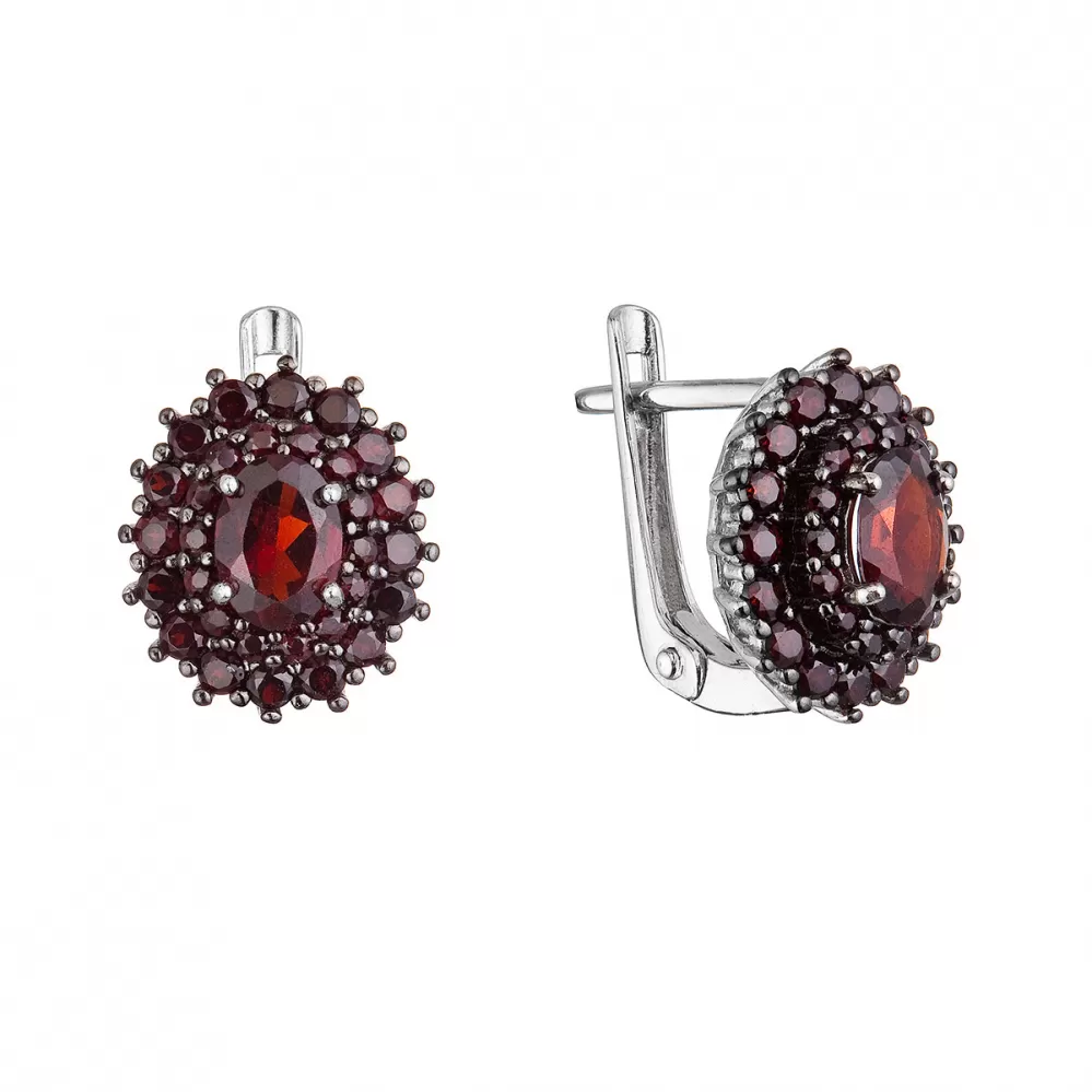 Luxusné strieborné náušnice bohato vysadené pravými granátmi zvýraznia každú dámu!